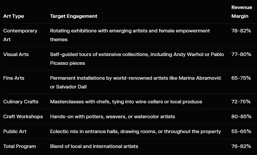 These benchmarks come from aggregated insights, like those in the  Art Tourism Market Report, showing how artist-in-residence hotels drive maker tourism.